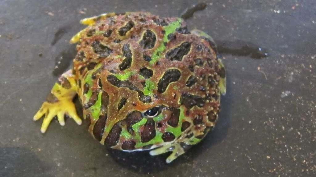 LOl i know what you mean my Sam has a stainless steel frying pan lid now .It takes 2 hands to hold her dean can almost swim in it . He is outgrowing his expensive water bowl as well .The wifes not so thrilled with losing a pan lid but eh i bought her a new pan and lid to replace the one i used .My frogs poop in both their water bowls and the tank im always cleaning both. the reptifogger i use helps them a lot they come out after it stops and hop around a bit at night .When they are hungry they will stay out of the substrate ( their heads mainly and look at me when i pass by the tank ). Eventually they a get a routine going .you get used to it.