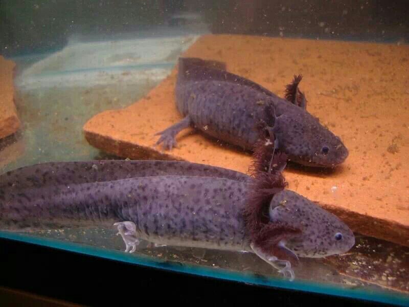 I have some wild type axolotls that have gold specks and possibly a deep hint of purple in their gills if that's what you're referring to? They're my pets though.