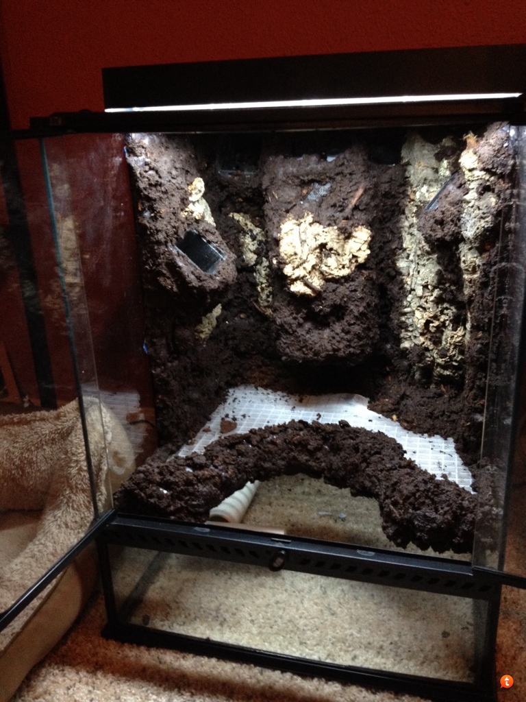 I have recently been working on a display tank for my red eye tree frogs. I'm creating a Paludarium with fish inhabiting the water proof section of the tank. For filtration I'm using a turtle clean 501 canister filter. The tank will also include an internal air circulation system. I'm using a Silenx Effizio 80 mm fan. Here is where I'm at so far.