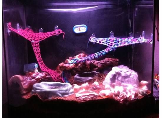 And this is currently how my tank it set up! Not the fanciest, I did what I could since its actually meant to be a fish tank not a frog tank, but the frogs seem happy, and I love it!