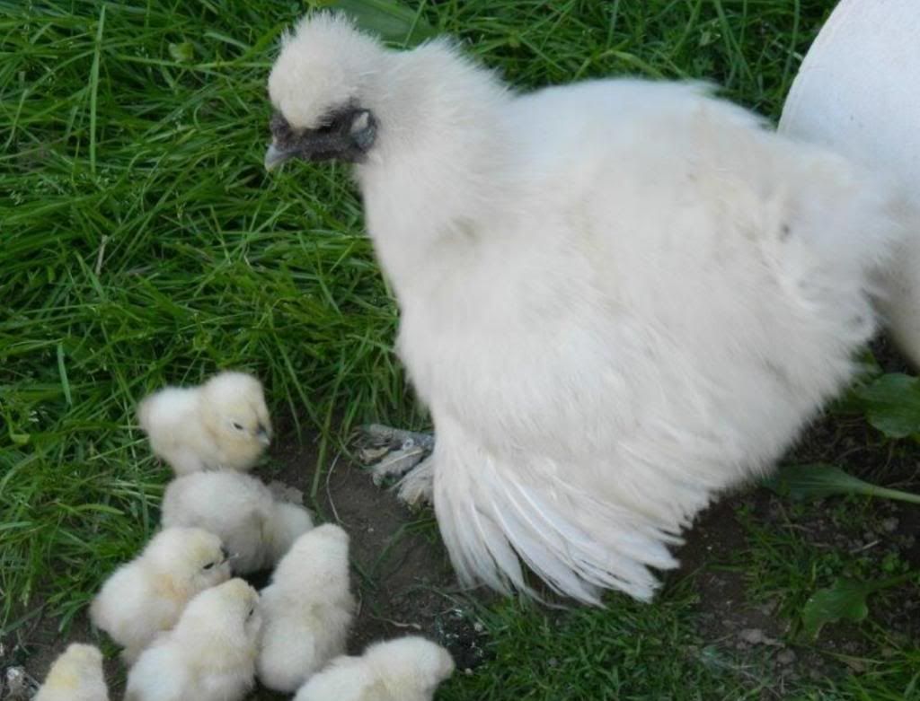 Reese the silkie hen and her babies(they're 1 week old).