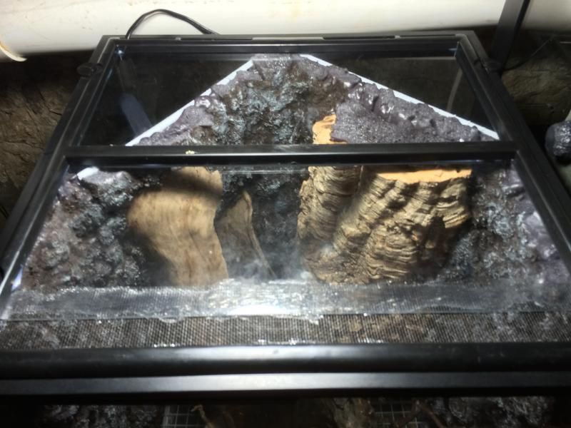 Hey gentlemen and ladies who may be following along! I knew y'all wouldn't forget! So this week I was out of town with the hubby ( he was accepting an award from the company he works for) and we have our musician friend , justin james, in town this weekend staying with us. So, to be honest, not much of the construction got done. I did silicone my pvc supports in place and created an access tunnel and trap door to access the false bottom. I took the time to order ski the rest of the items I needed. I also had to sift through the gorgeous pieces of cork that I have from Maryland Cork. I also have been playing with the overall layout in my head still. Im stl getting stumped on the waterfall construction. Im learning that I need to just work on this viv the way I used to paint... start doing and adapt as I go along. Of course plan ahead for the big stuff, but ultimately mother nature is one hell of an artist and she turns errors into artwork everyday! <-- my new motto lol