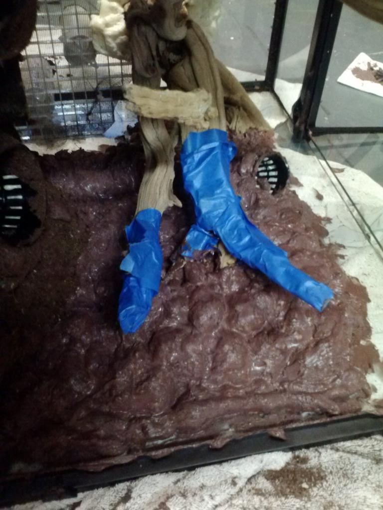 Tonight I layed down the silicone and coco fiber on the left side of the tank: