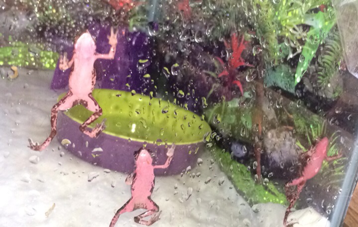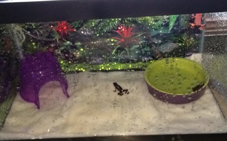 Their quarantine tank has to be easily cleanable. Very simple. Until their Chytrid test results are received we have to consider them to be carriers. So far they have no signs of illness.