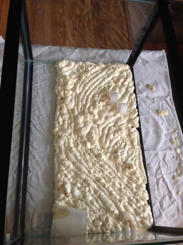 Well, it's not huge, but this 20H tank should be good enough for 2 Azureus. I have ordered a bunch of supplies and a lid and all of that is on the way. In the meantime, i decided to jump right in and try a build of my own. Something simple, but it is my first. i left a few inches at the bottom of the tank b/c i will have deep substrate. i added a plastic cup cave, and after the next layer, i hope to gently pull the plastic cup out. we will see. i plan to give it extra time to set up. i also placed two very small cup bottoms for air plants later. At Lowes today i got a pothos and a Cute little plant called a Fittonia Red Anne. Wish me Luck, i'm totally apprehensive about doing it myself.
