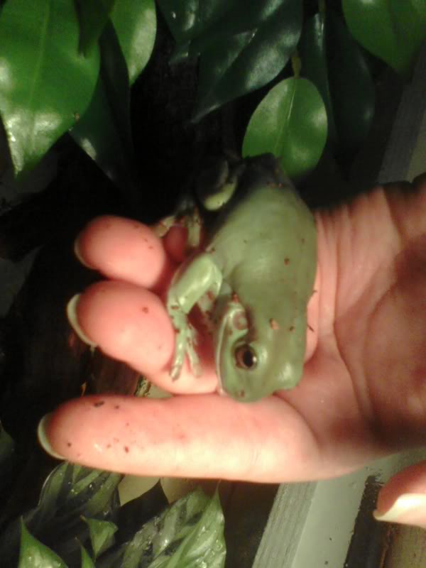 I am very happy with my new froggies...they both seem to be doing well... i had just dropped some crickets in when i took the photos