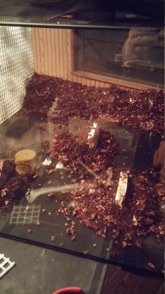 I have been so worried that he hasn't been getting into the water! I knew he got into the water when I had the glass dish in but I switched it out for a "real" water bowl. Haven't seen it since. I am hoping he poops! If he hasn't by this afternoon, he is in for a rude awakening. I have to clean the tank so he can sit in warm dechlor water while I am cleaning it out. He's still eating and acting as normal as he has but no poop in a week?!