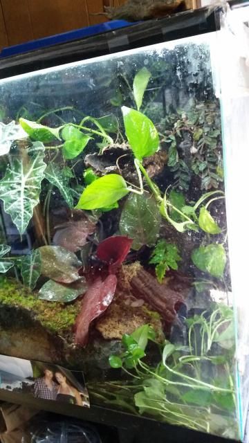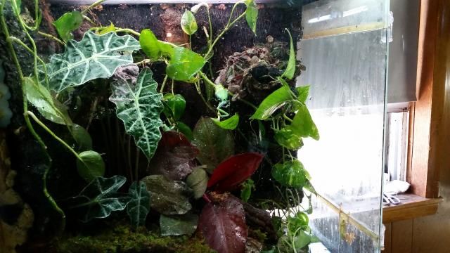 I custom built my Red Eye groups 70 gallon EZ access with a small water feature, and they breed quite readily in here if I extend the misting over a course of a week, and if we get a rainstorm. Here is the tank: