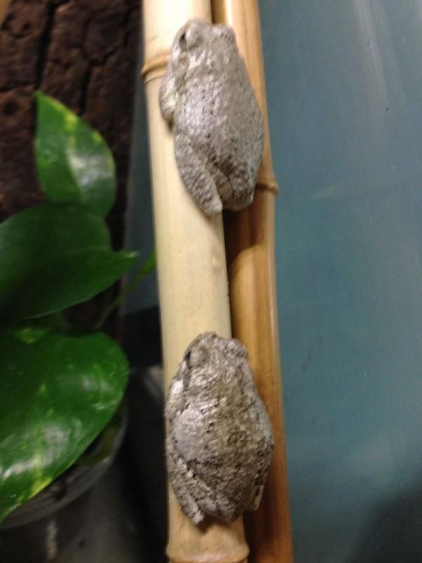 I raised my 2 Gray tree frogs from tadpoles this past spring and summer, this is their first winter with me in Eastern PA. the inside house temps are 68-70 at any given time. I have 3 potted pothos plants and one of the 2 frogs is getting thinner and has been hiding in the soil of one of the plants. i am worried, but my other tree frog is fat and is not doing this. they were the same age and probably the same parents. both frogs are great eaters and i thought they were both looking plump, but when i picked up the hibernator today he/she was a bit thin. They eat Crix or FF every night, they have a small water bowl with dechlorinated water and i spray the tank daily with distilled water. they live in a Ext Terra that measures 18x 18x 24 high. i have bamboo and fake vines for them, also hiding places with fake plants on suction cups.