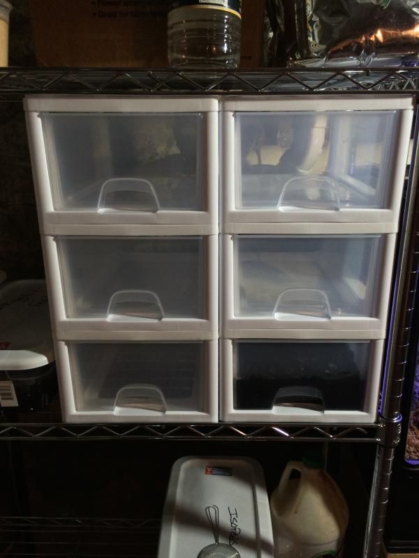 4. Springtails - I am in the process of upping my culturing. With so many tanks and now with the focus on Dart and Mantellas I was not able to add them to the tanks as often as I would like. I split my 1 culture into 3 a few weeks ago. My current plan is to split those 3 into 6 once I see a significant population boom. All 3 of them are in shoebox size cultures. Hoping to end up with so many springs I don't know what to do with them lol. I bought a drawer system last night on Amazon. Each Drawer is about the size of a shoebox (7 Quarts). I am going to test using them as cultures so I don't have to unstack them to do feedings. I feed my springs brewers yeast. They love that stuff!