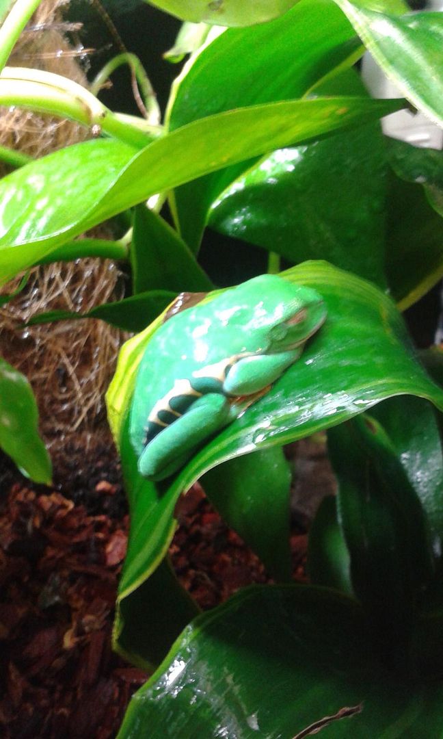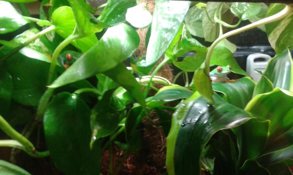 Well, I've recently adopted a poor pair of red eye tree frogs from my mother. They were wouldn't move or eat. Anyways long story short, after a few weeks she finally believed me. They are smart and they were kept with an emerald tree python... Now... Lol I sure wouldn't move if the next step of the food chain was there either... Needless to say they rock. This enclosure took forever to make and yes its planted.