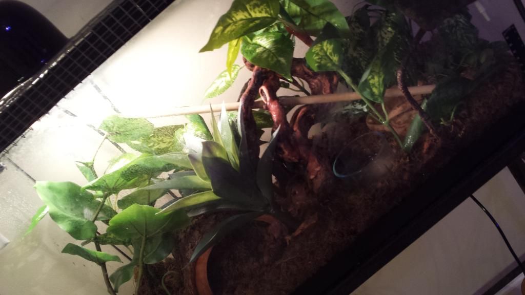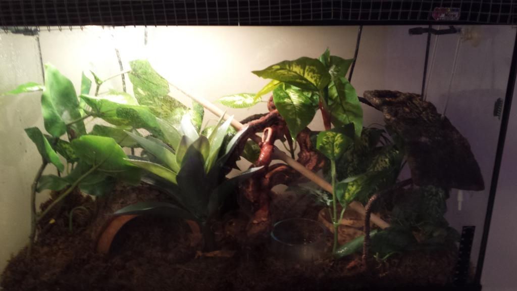 Yeah I found a piece of tall drift wood that I was thinking about putting there I just haven't decided yet. I just recently got the rs400 exo terra monsoon mister and another exo terra tank with 2 other tree frogs and my next purchase is another red eye which I think puts me at my frog obsession budget for now. Then I'm going to get some drift wood or ghost wood to replace that log. The tank is a 30 galThe wood on the right is a fake wood ledge I have tried finding the leaf litter but so far have only been able to find it online. Unfortunately I only have one reptile store around here and its not that close to me. Whenever I change out the bottom I want to make a background with the great stuff foam. I kinda feel like its overcrowded with how I have it now is there such thing for a retf?? lol thanks for the reply!