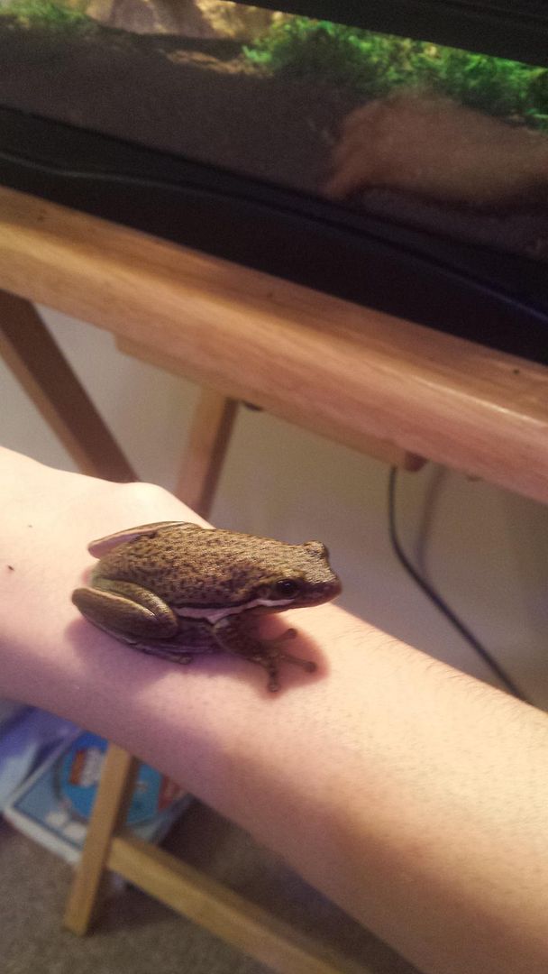 Thank you I hope so as well I have never cared for a hurt frog before and I didn't know till after I picked the pair up. She just kinda drags her leg around but she eats fine and gets in her little water dish. Guess it will just be a time game. Thank you for responding as well![]()