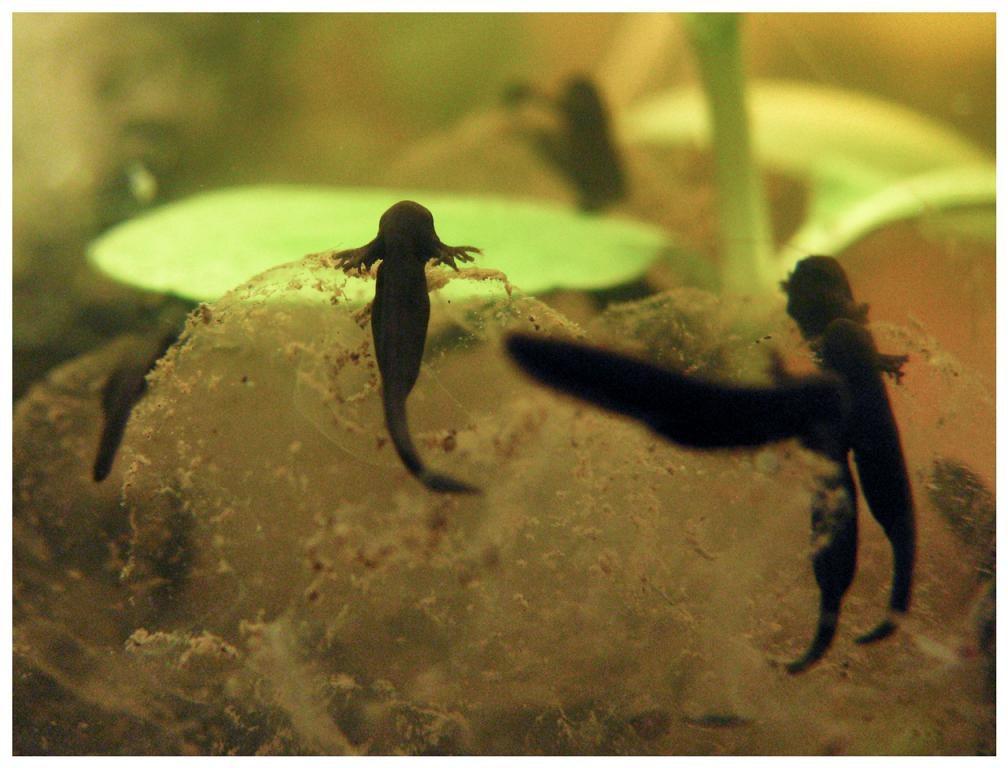 As the temperature inside is mush higher than outside in stream, where the frog spawn was found, tadpoles have emerged in one day.