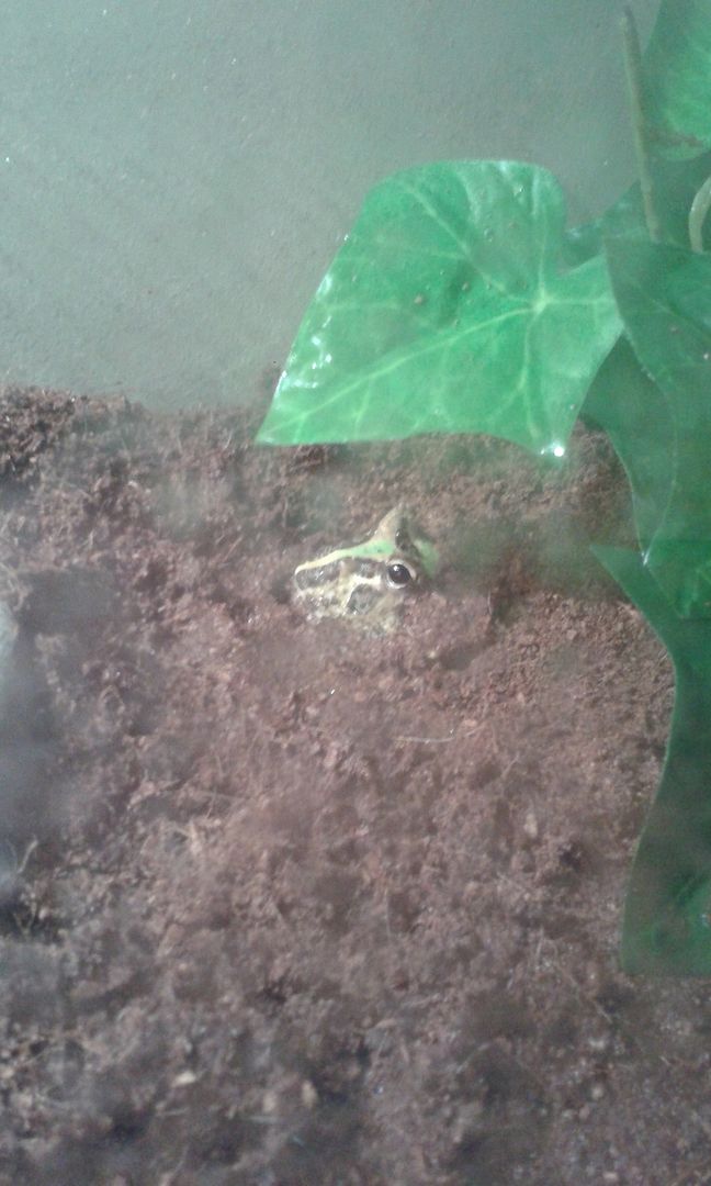 So, while getting some eco earth today for huey, i noticed this lady today. She really struck me from coming out of her burrow to see me, to those stunning colors. Any clue towards an ID for this middle size cruiser? There are 2 little spikes above each eyelid, highlighter yellow accents, neon green, and nice rich color(female) under the chin. Not bad for $25 i think.