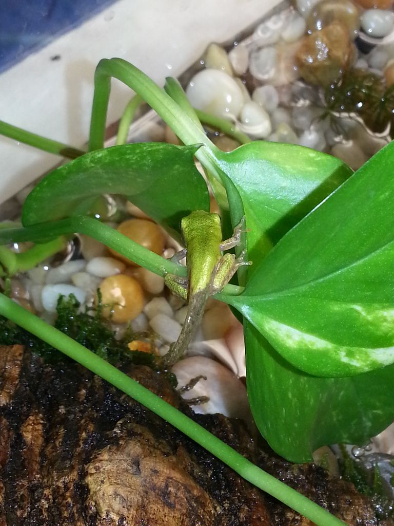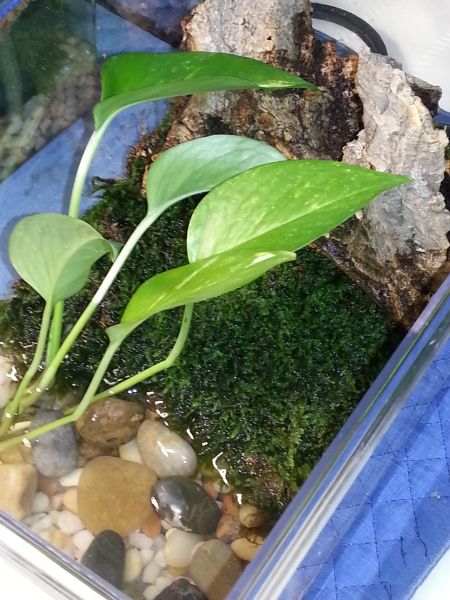 Being tree frogs, they will appreciate being able to climb and perch on the leaves and stems of the Pothos cuttings.
