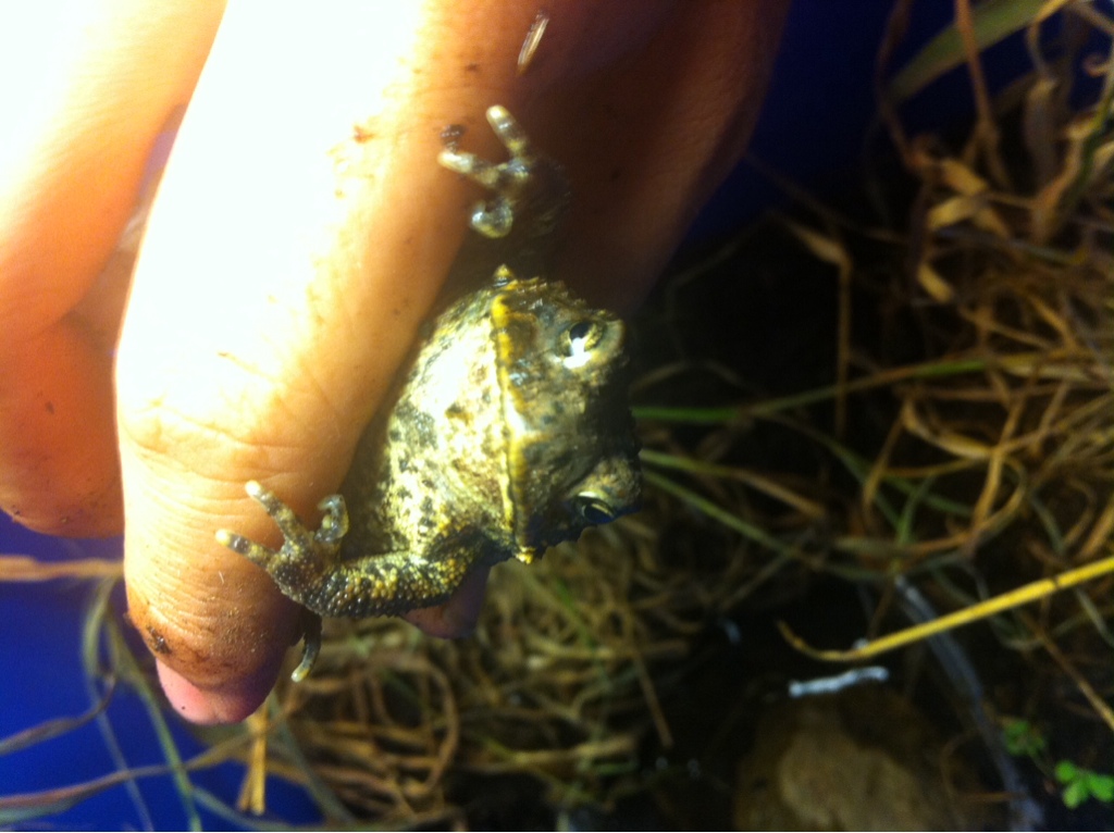 I have some news for everyone concerning the toad. I'm letting her go in a safer place. I was going to keep her but I looked at the 75 Gallon and thought, why overcrowd it? It beautiful and it's not meant for that. So she will be going home after I feed her. The place I got my Leopard Frog got them in so I will be adding the final animal to the tank with a female to compliment my male. Wish this little toad luck!
