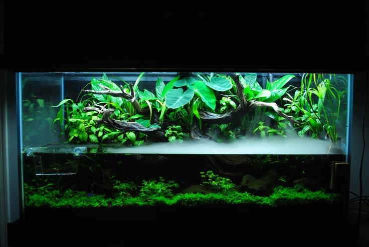 I think I will try the riparium, but turn the land part into a bog filter. If I pipe the water to the bottom of the planted area and make a small waterfall back into the tank, it should be able to keep the tank filtered well. Now to design it.