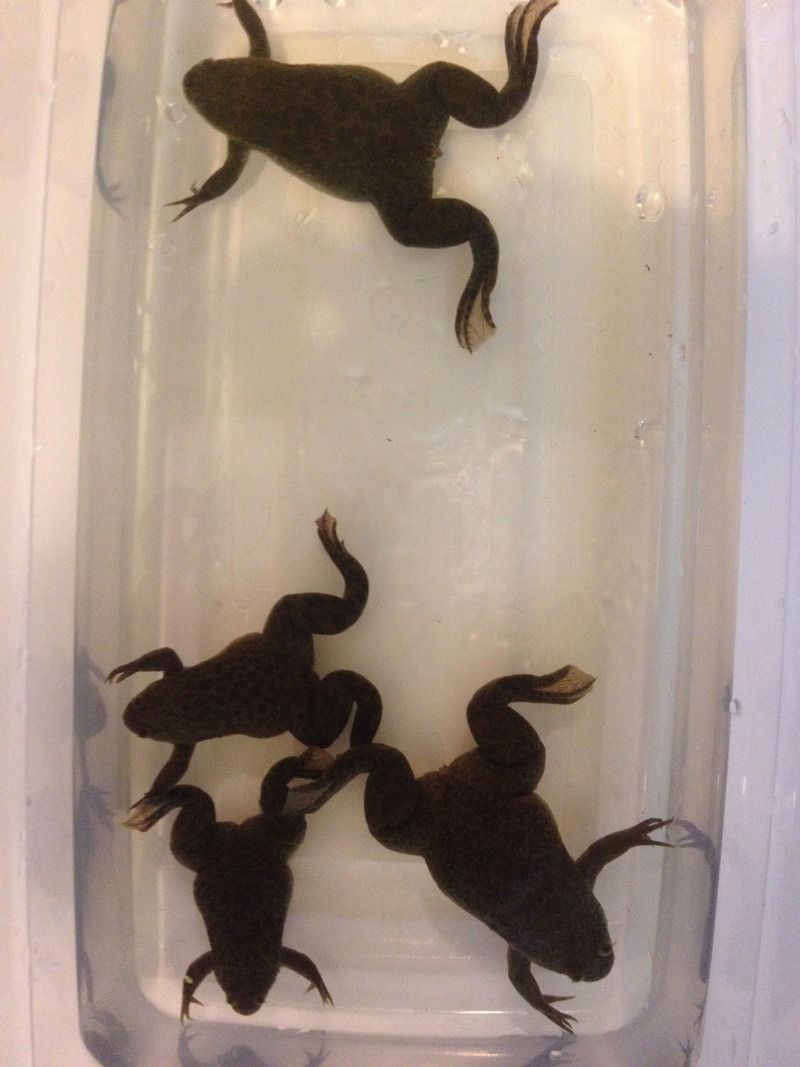 I got my new frogs today! They are a pair of X. muelleri and a male borealis. They are beautiful. I really like how dark the muelleri are. I'll post pics once they get settled in.
