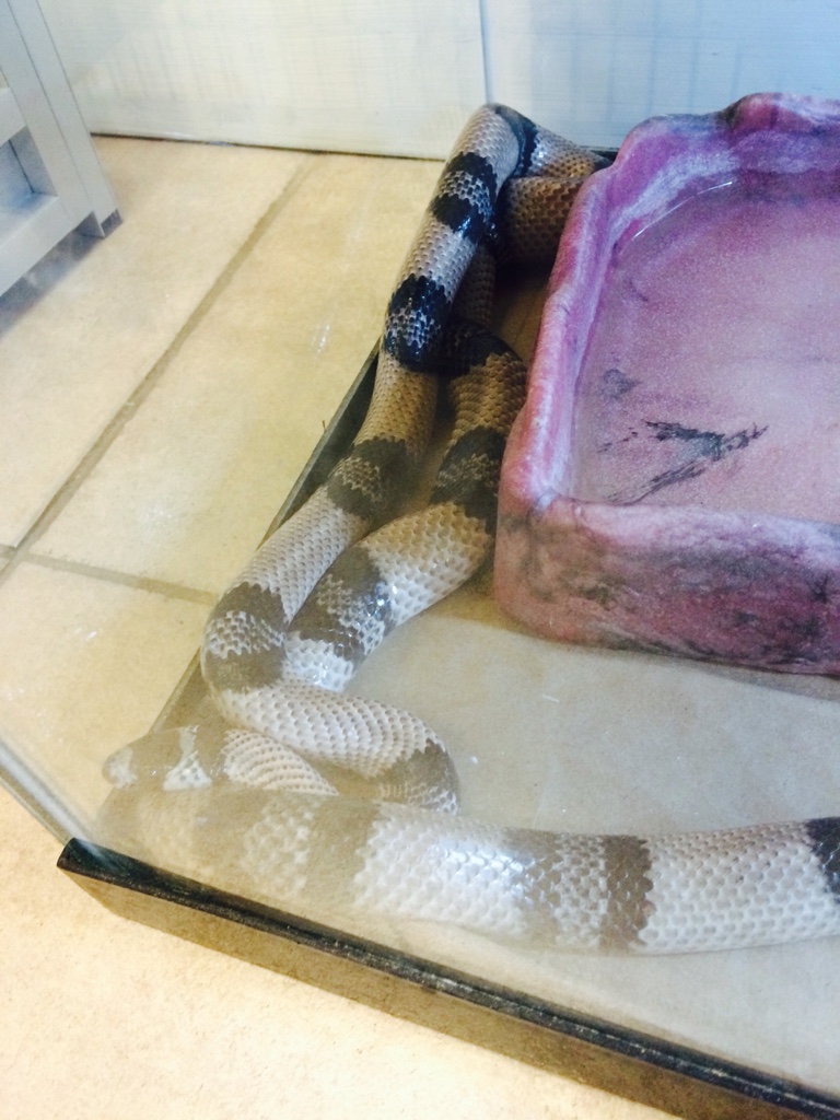 Hello everyone, just wanted to share my new edition, an anery Honduran milksnake. Got her from the exotics vet center where I got that internship. Anyway, a guy called because the snake was eggbound. Upon learning the cost pf surgery, he asked how much it was to euthanize her. He didn't want to pay that either and instead planned to kill her himself. The vet was having none of it and so she had him relinquish the snake to her. She did the surgery quite easily and the snake recovered and is eating well every 5-7 days. The snake needed a home though, so she asked if I would be able to take her. Talked it over with my parents and on Wednesday, the snake will be home with someone who won't stick her in the freezer.