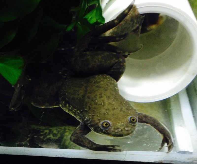 These are some of my favorite frogs from my collection. I will probably start breeding again soon, so I am conditioning this female laevis for breeding. She is the sweetest frog I have and swims into my hand every time I do maintenance or feed worms.