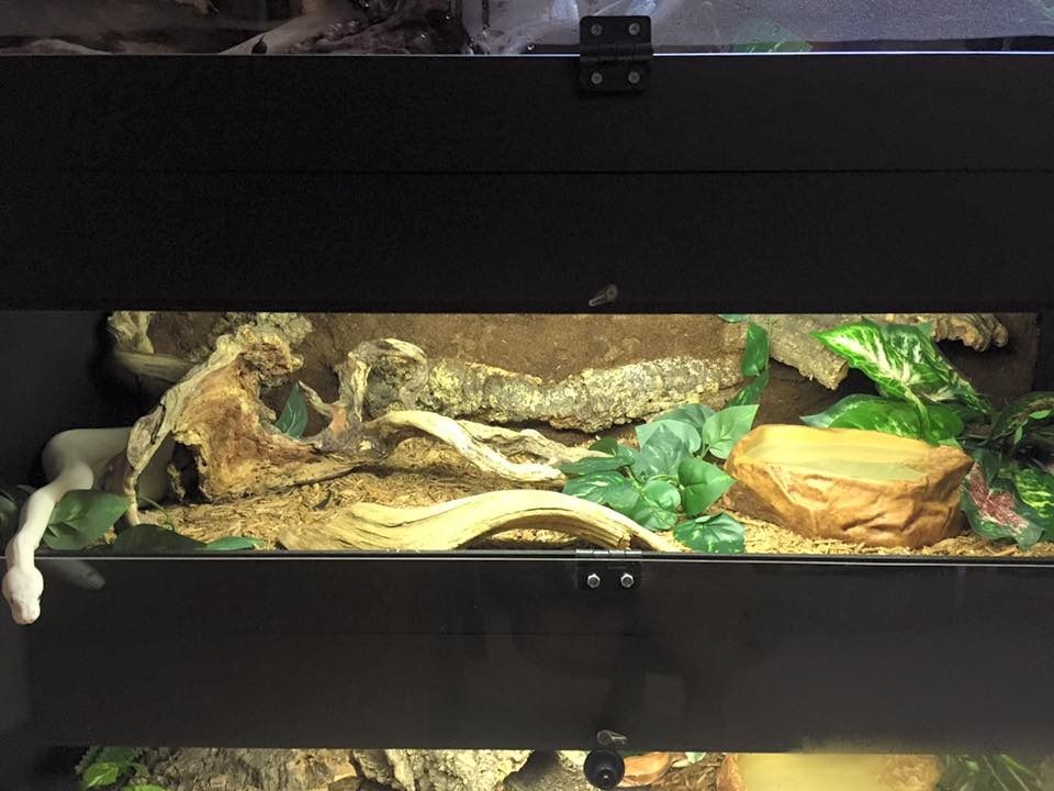 I wanted to share some photos of one of the projects I've been working on this summer. The kids needed some home upgrades and I'm a big fan of naturalistic displays when possible. I decided to invest in some quality caging and products for some 'permanent' homes that would be both ideal for the snakes and aesthetically pleasing for me....It isn't as easy to achieve naturalistic vivaria with large snakes (vs. frogs) because they trample things so easily, but I gave it a try! No live plants, sadly.