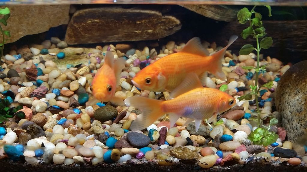 Underwater I've been keeping it simple. I have 3 Comet Goldfish; from left to right their names are Goldilocks, Philip, and John.