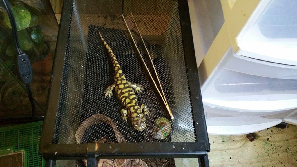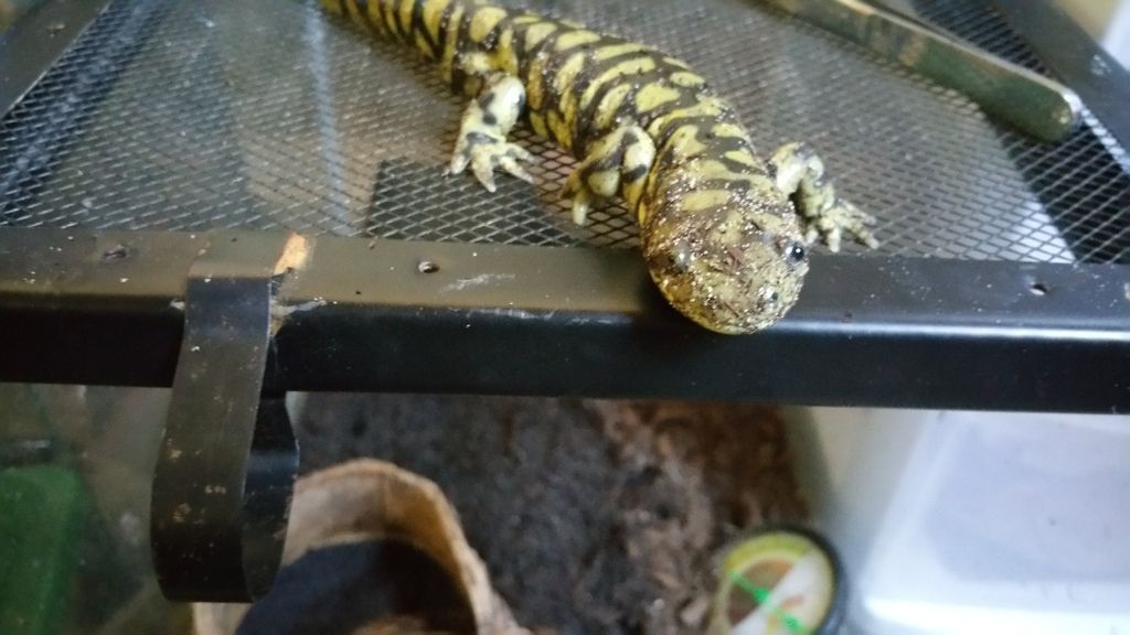 Here he is, with his characteristic "Eye patch" (In reality though, it is just pigmented, he has a tiny bit of color at the back of his eye, and you can see his pupil):