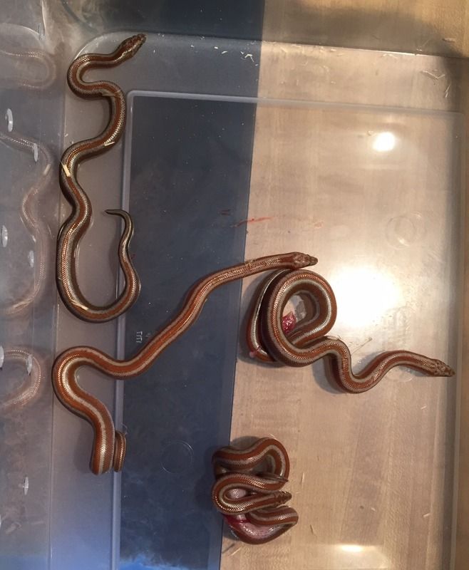 I have a few Rosy Boas and they carry the babies in a clear egg sac in their belly until birth. My older female gave birth at the end of september. I have 2 males and 2 females. The first pic you can see their umbilicus. I need to make sure they are eating and then i will find homes for them.