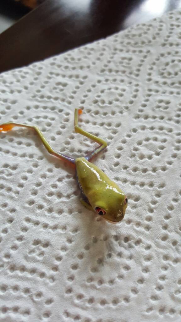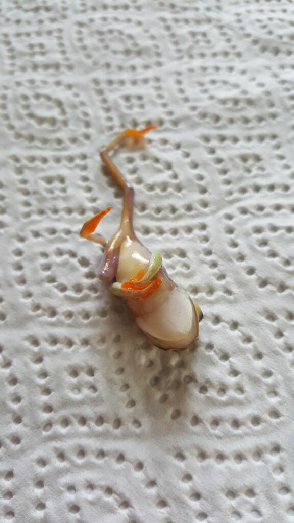 The only different between the two that I have noticed is that my original slept to the top half of the tank like a normal Red Eye. The new one however (since the day I got him) has slept on the edge of my water bowl. At first I moved him but each bight he would end up in the same spot so I left him to do his thing. The only thing I would have thought to trigger this behaviour would be Humidity? But that's fine. He is from a different batch to my current frog and was purchased Monday (as a birthday present).