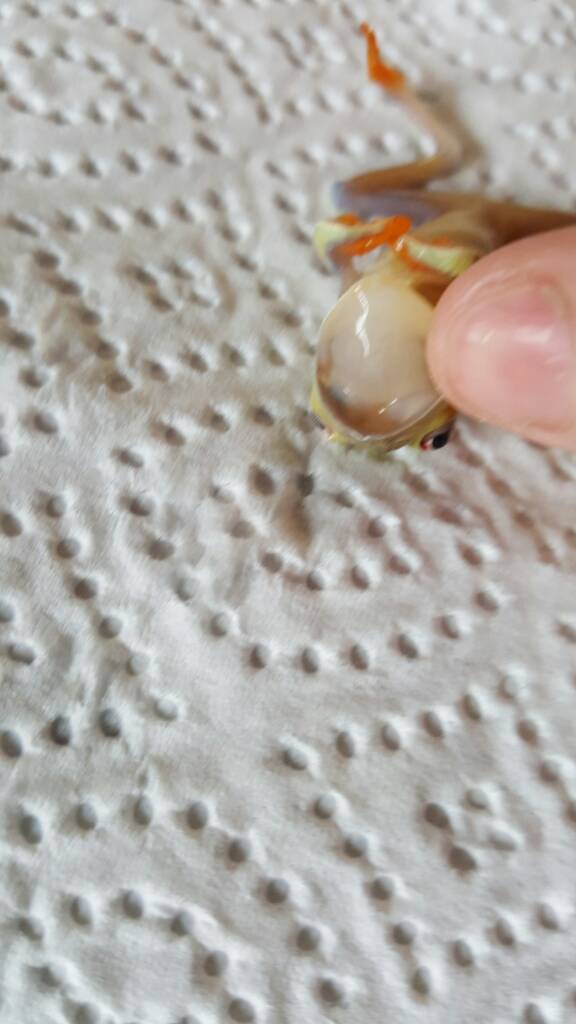 Thanks for the info. I've only had the for a week and the sleeping sign was the only significant difference to my frog. My frog is also a slight bit larger (literally the tiniest bit) I could post a picture if you like as I have frozen the frog? He looks bloated but I think that due to being dead in water all night. I opened his mouth out of curiosity and again looks bloated. Literally would struggle to fit anything down there but again I think this is due to the being in the water all night...