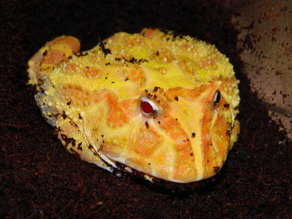 This is groot my 11 month old Albino. She may not look like it here but she measures 4 1/2 inches and she is very grumpy. She is the bath in the picture because I was cleaning her tank, this is the only time I pick her up because she always tries to bite. My ornate wasn't in the mood for pictures and my new little baby C. Cranwelli is being very timid so I really didn't want to bug him but when I can get some shots of them I will.