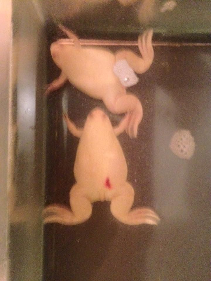 Funny thing happened too. A day after I took her out, and put her in the hospital tank. My other frog which is a girl too layed a bunch of infertile eggs. So I just sucked them all up out of the tank.
