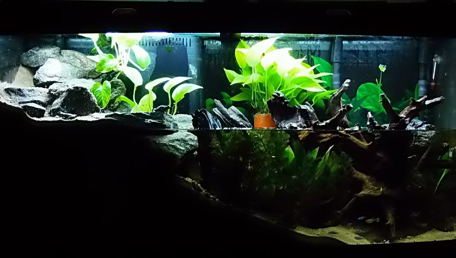 That looks fantastic Jen!! There ya go. There's one way to do it. You can also do it with a false bottom and a pump hidden underneath, or even a pump hidden inside the drainage layer (my personal fav), wrapped in filter foam. Remember, for those tanks that have pumps under the substrate, to leave access to the pump for when it needs to be repaired/replaced. They always do. Lol. The upside to Jen's method is the canister. Easily maintained, but takes a little more ingenuity to hide stuff, unless you are fearless and don't mind drilling the tank, which is easy, by the way.