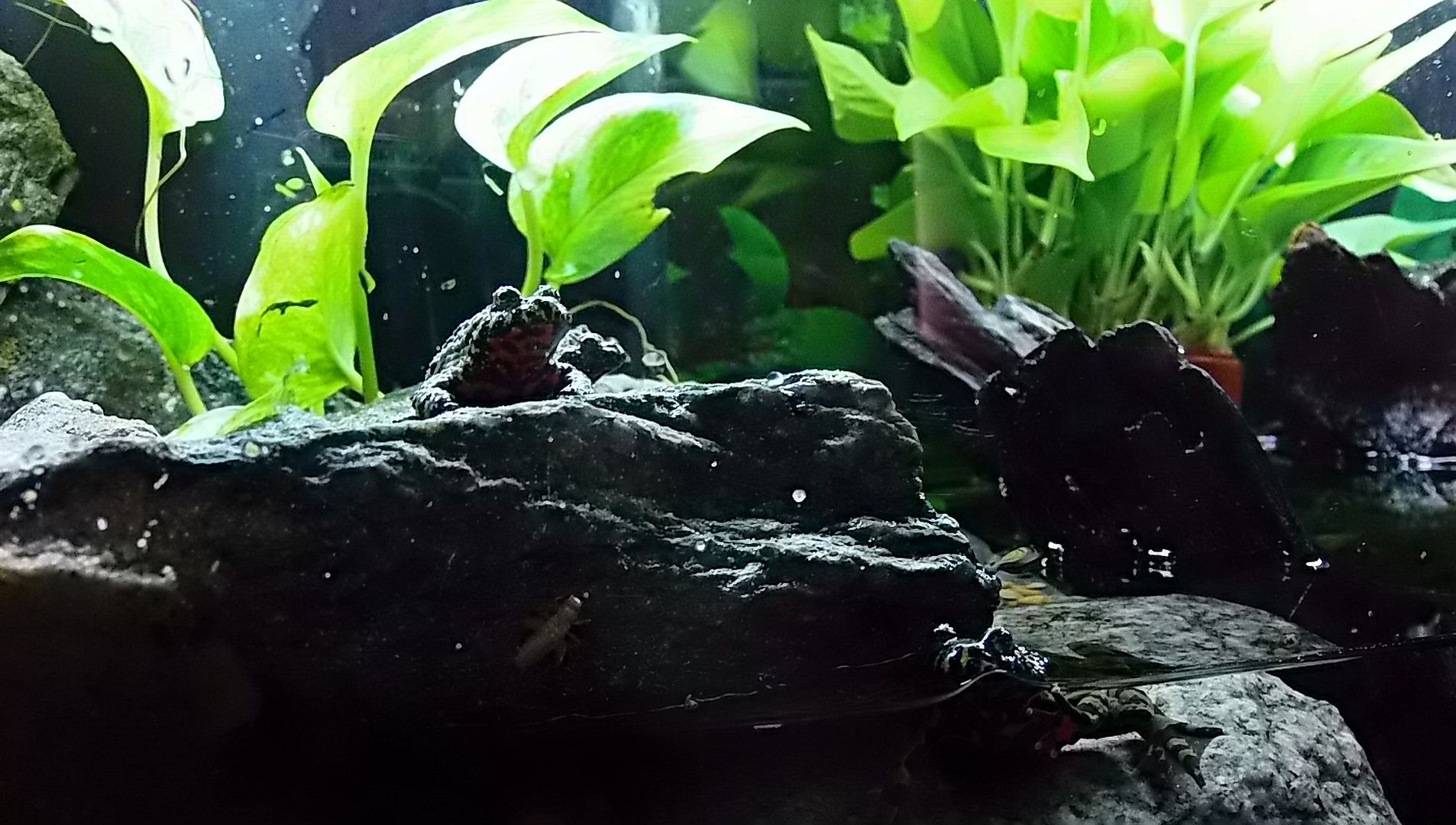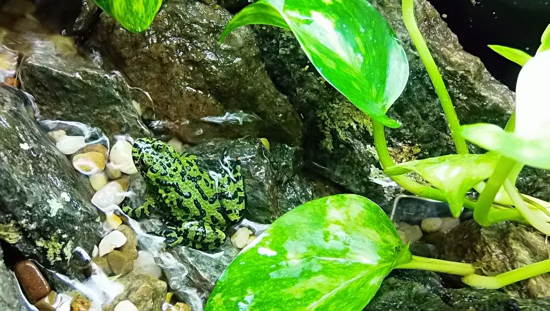 Frogs in the waterfall stream, again I had rocks around so they could either sit fully in the water or partially in the water.