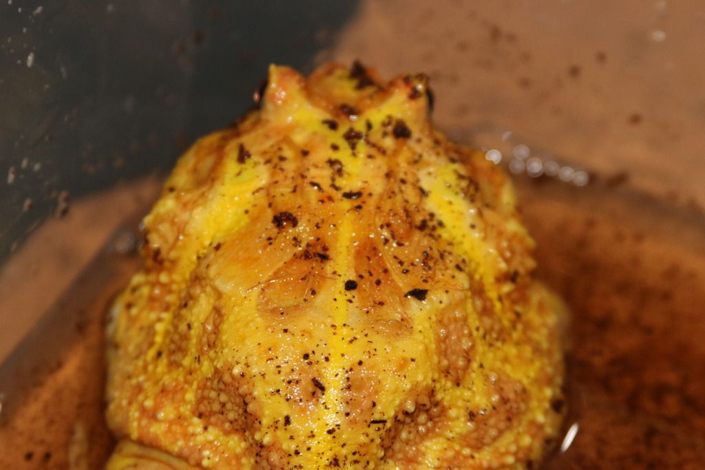 I'm not as concerned anymore, he is eating and voiding well, and seems to be behaving normally ...as far as I can imagine how a captive Pacman frog would act that is.