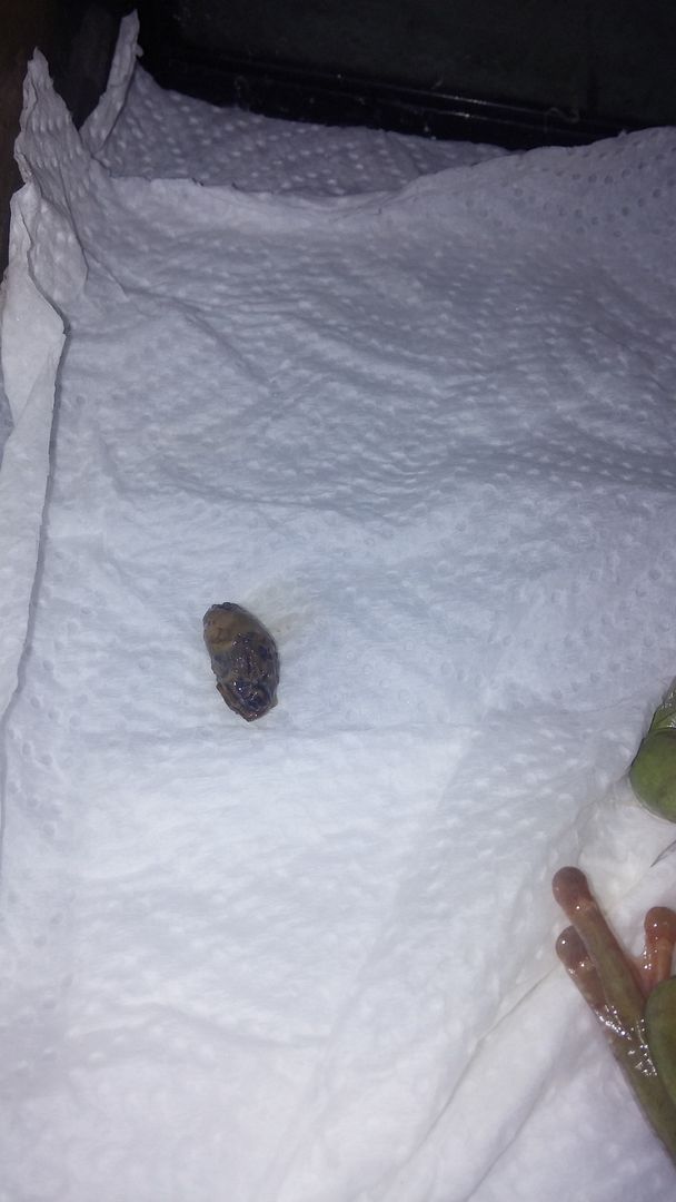 As you can see, normal poop, he is on paper towel substrate until further notice, humidity is between 50 and 70(tends to be on the lower side when I get home from work. Most of the day it stays around 60 to 70), and temp is a steady 80 degrees. I tried to Google these things and naught came up... :/ I'm hoping it's nothing life threatening :'(