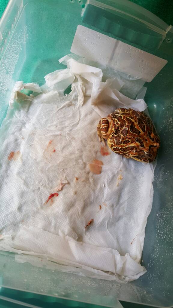 Hi everyone, a week ago I saw a wound on the leg of my Pacman and two balls near of the wound. I get worried, but was Sunday and there were no vet open (I'm from Peru).