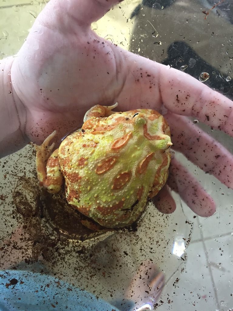 Hey guys, my Goblin is doing great, but I was thinking of picking up an opposite sex pacman for breeding endeavors once I'm more experienced. (Since it'll obviously take time for them to reach full size.) Can anyone tell whether this one is male or female? I haven't heard any calling but I don't think that automatically means anything.