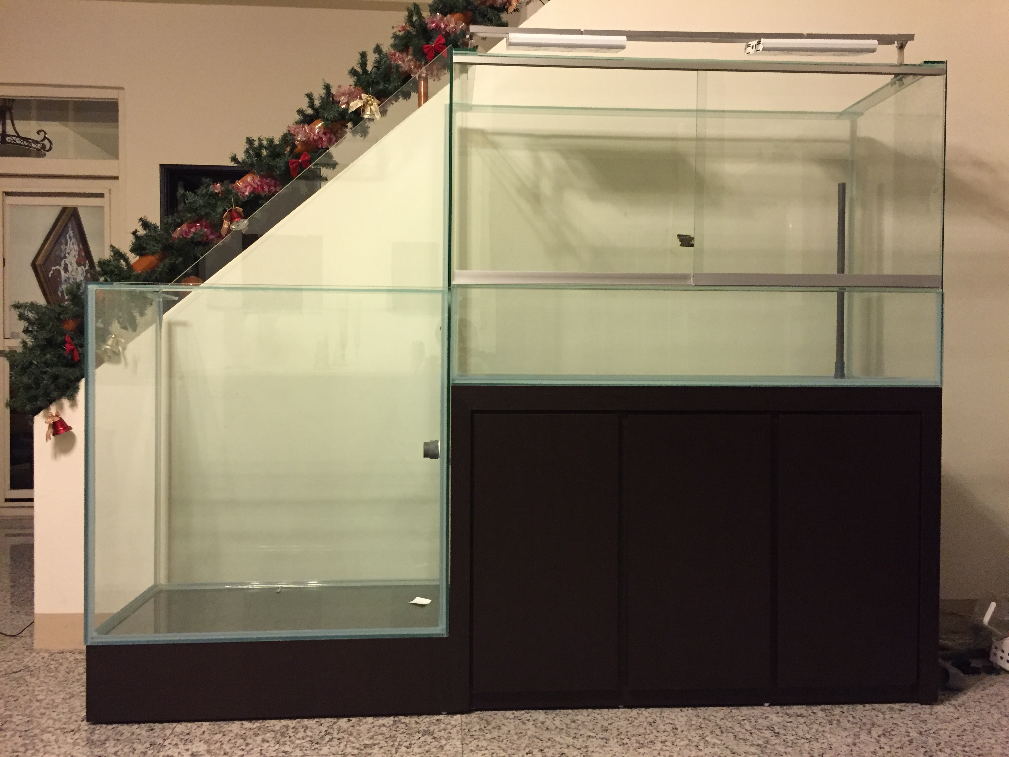 So the enclosure stand and plumbing are finished. Now it's time for the hardscape, aquascape and landscape.