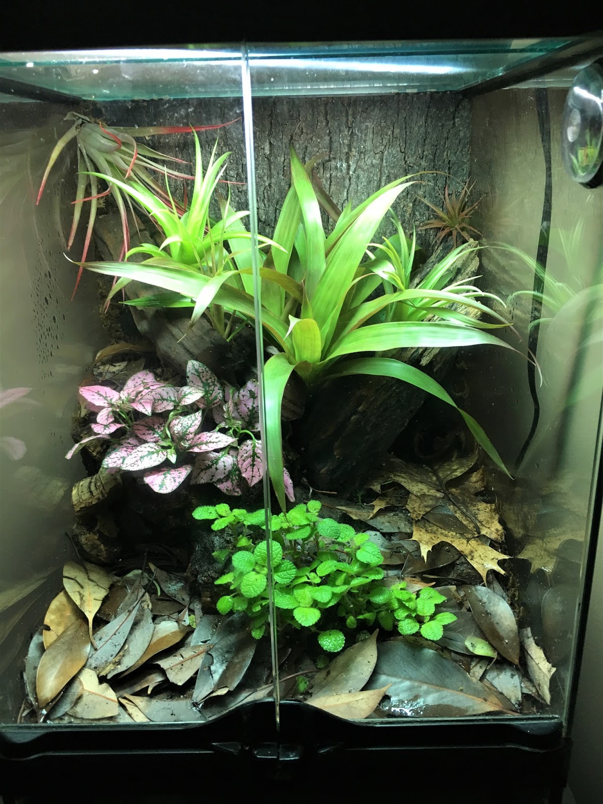 Hi guys, I set up this 12x12x18 bio-active tank, with the intention of thumbnail dartfrogs, but am curious what other interesting anurans could live a happy life in here? The substrate is an abg-type mix with springtails. Humidity is around 80% and temps 73-75f. I do not wish to add a heat source, however, I could add a water container. Here is my main catch - NO CRICKETS OR ROACHES - i'm cool with the tiny feeder bugs but don't want anything that needs these as a staple. So, suggestions??? Would like to be able to keep more than one individual in the tank as well!