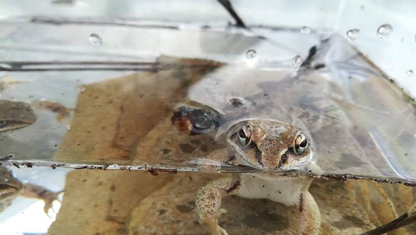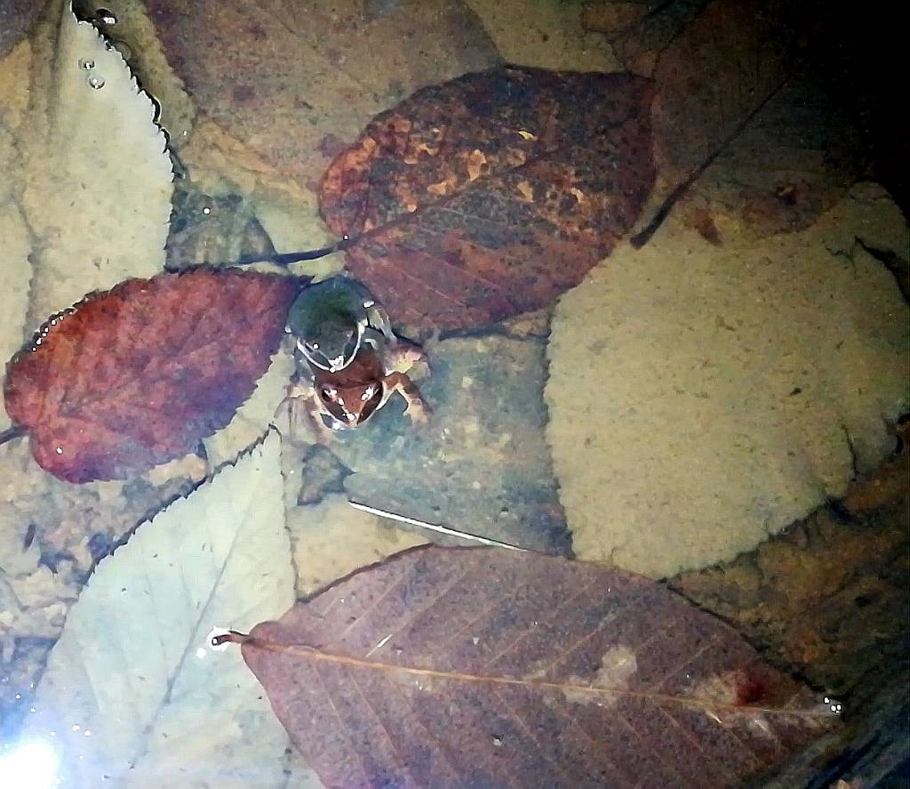 This is a picture of a Wood Frog. Their season for breeding is about done.