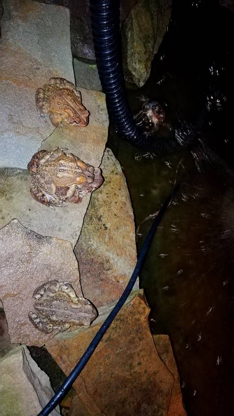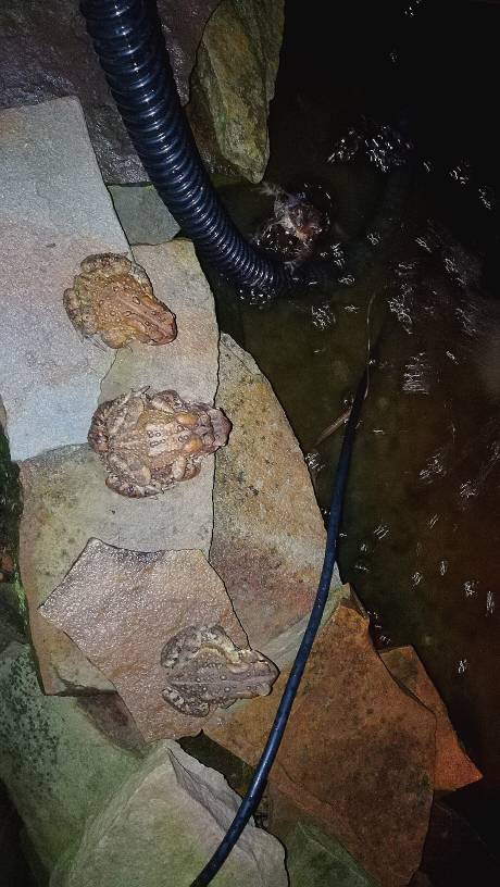 Tonight I was able to save 10 toads and bring them to my pond because they were so close to it anyway. I got them off the street and 10-15 I helped cross the road.