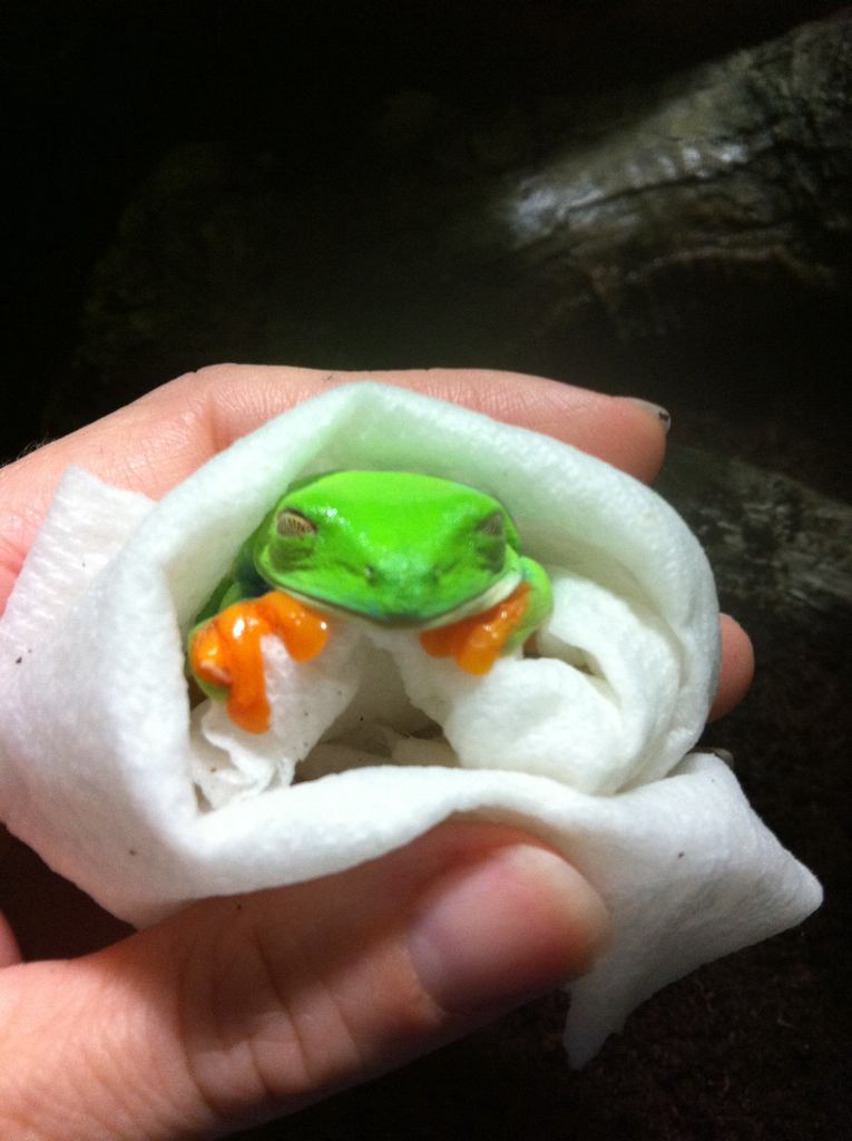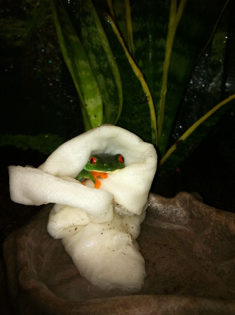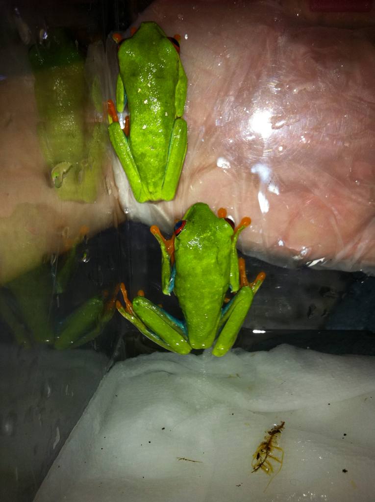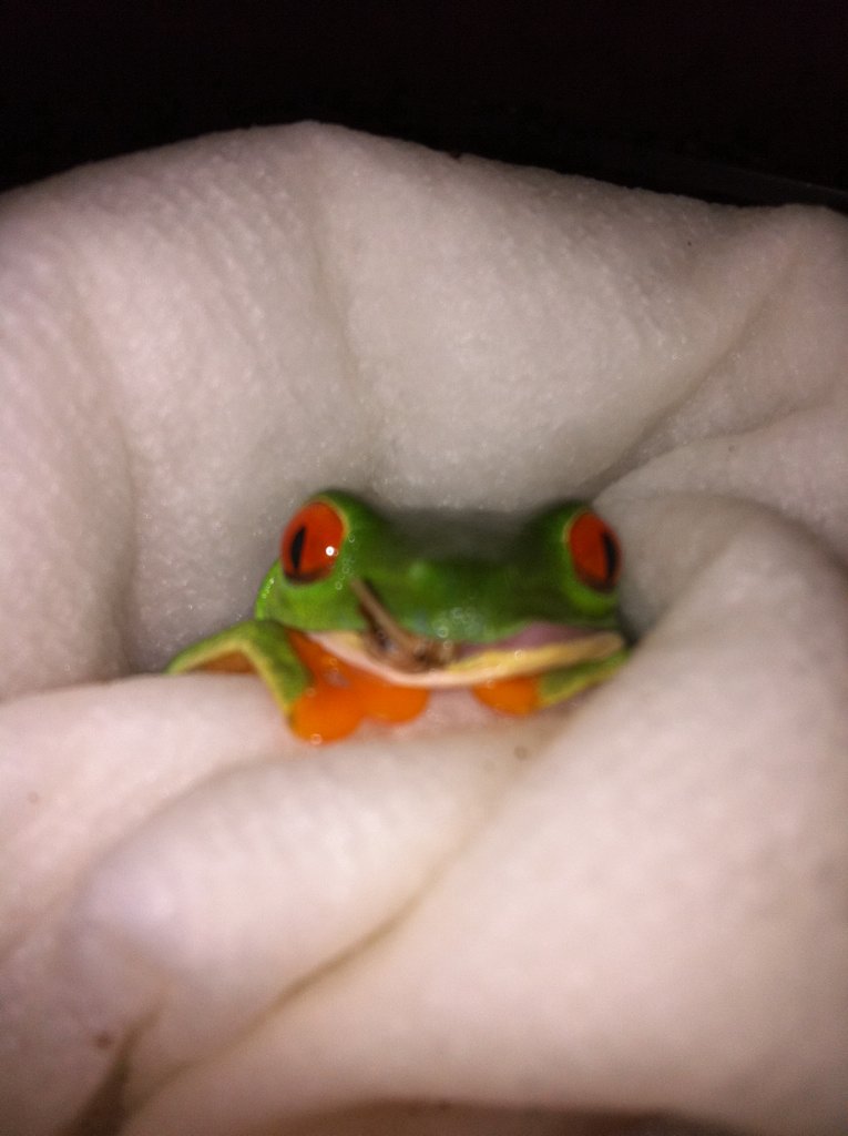 Between me and my boyfriend we have 5 red eyed tree frogs. I got them for my birthday last year and around 2 months ago we picked up some more. They were all in the same tank until my new boy, Frank, had a prolapse. We swiftly removed him from the tank and gave him a sugar bath, when his prolapse had gone we put him into our quarantine tank. After about a week he looked like the most healthiest frog in the world and we were thinking about putting him back in with the others. At this point we noticed that my old boy, Yoshi, the one I have had had for over a year was looking a little strange.