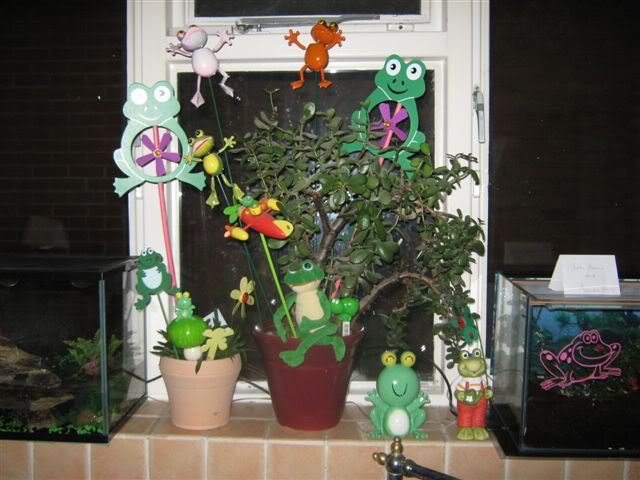 I love some of the responses here. Pheobe froggie, I love the jade and frogs of many colors. And for u super froggers, we know your in disquise saving frogs everywhere u go!! And cape, oh was that a slip Tony!! And to Kisa, u are starting real early, u have time, within 5 years you'll have quite a few.