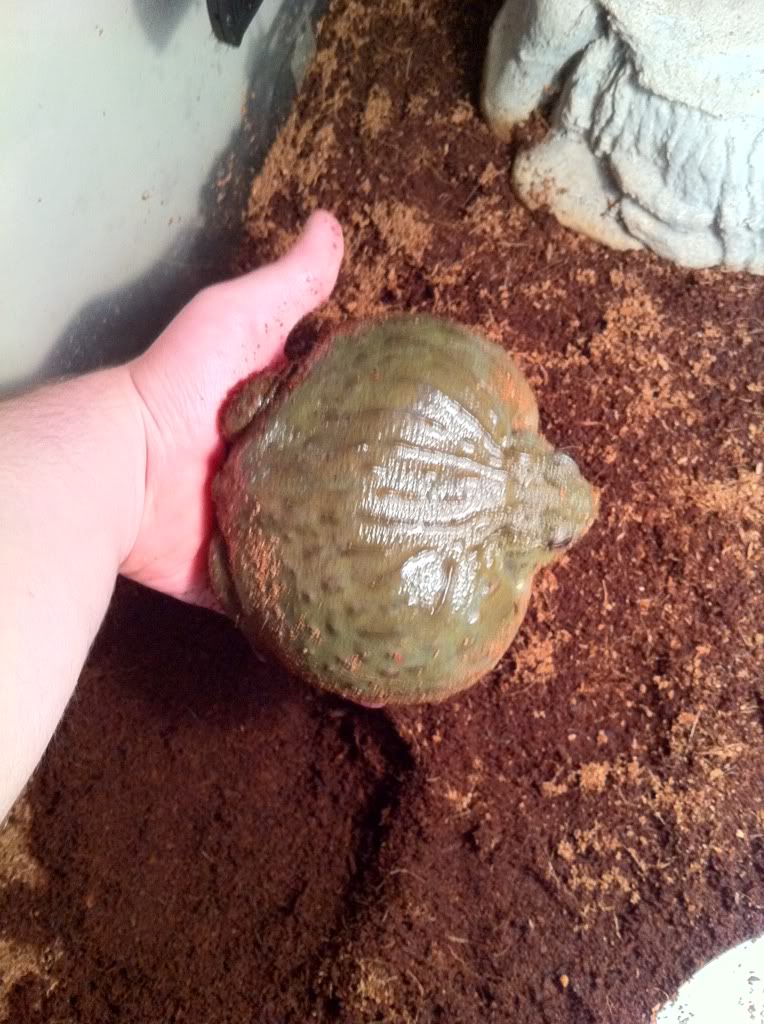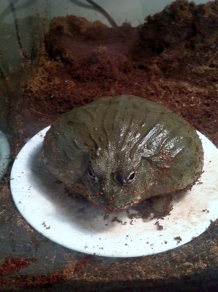 That sculpture of the african bullfrog is amazing!!! The pics of sloppy joe also,even though the 2nd pic (birdseye) makes him look like hes out of shape his head looks tiny compared to is bloated body. Is his setup all water???