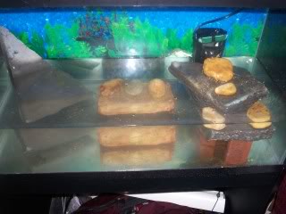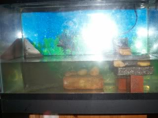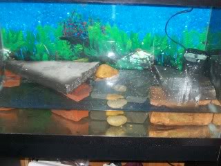 ok so bruce is comfy inhis frog free toad abode at the zoo and i got a newt in the old tank with a new set up
