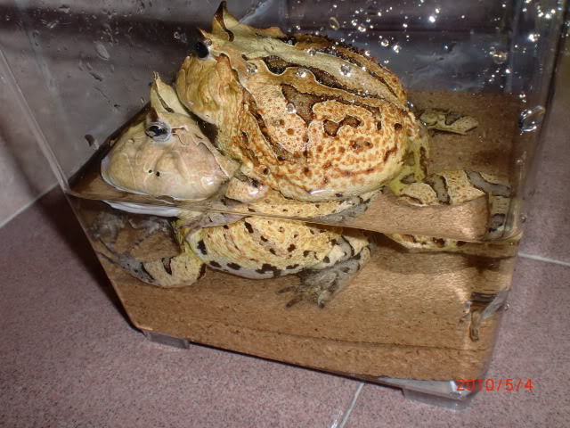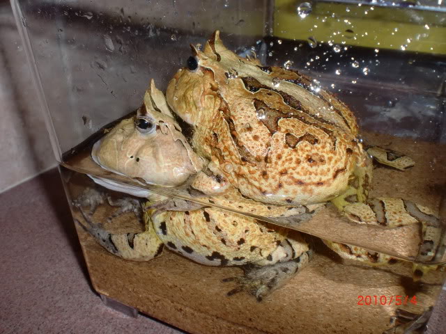 dude, I'm pretty those are surinam horn frogs. You need to get some heat and artificial rain going after a 2 month season of cool dry climate "winter". They usually go at it with great success with this process!![]()