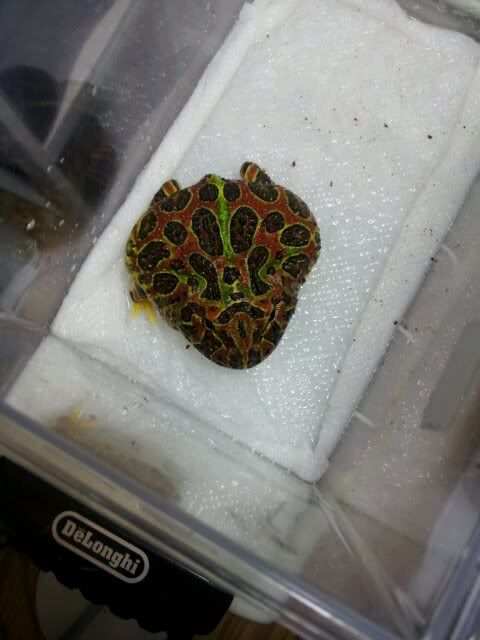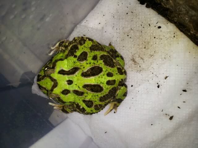 But for now, here is a pic of my new "Special" baby. Since we are breeders, the odds say that we will on occasion get an odd animal. Well after about 4000 tadpoles, we have one special one........meet Cyclops everyone.