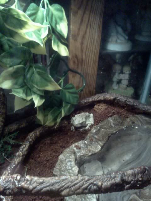 And Paddy in it, very scared and skinny gray tree frog, first day I got her home.